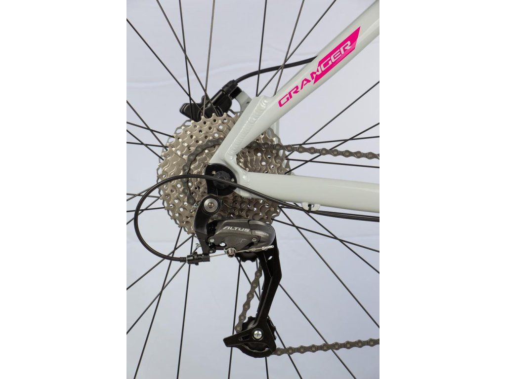 Horské kolo Granger je vybaveno v úrovni hobby a lehčí cykloturistiky. Odpružená vidlice Suntour je olejovo-pružinová se zdvihem 100 mm. Kombinuje ocelovou pružinu (pro odpružení) a olej (pro tlumení). Spolehlivá konstrukce, která není tolik náročná na údržbu. Stejné platí i pro převody v kombinaci 2x9.